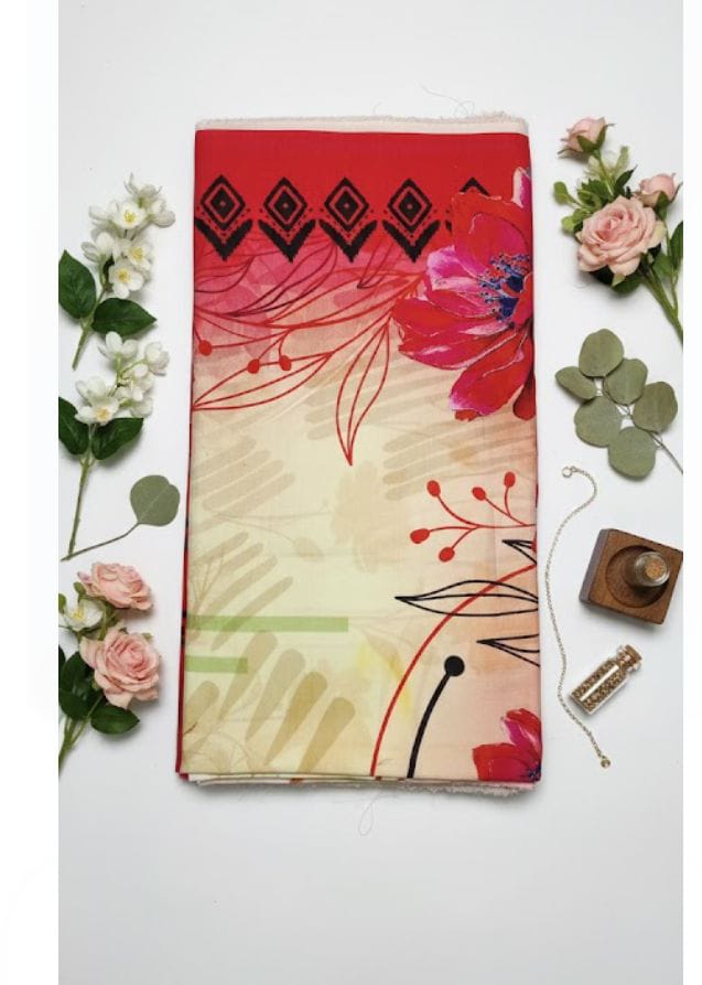 This Bold Beige Red Khaddi Printed Shirt is made from high-quality khaddi-inspired fabric that offers softness and lasting comfort. The striking combination of beige, red, and black creates a vibrant yet balanced look, ideal for everyday wear. The fabric is breathable, easy to maintain, and perfect for stitching into your desired style. With its amazing quality and affordable price of Rs. 999, this shirt is an excellent choice for women who want style without compromising on comfort.